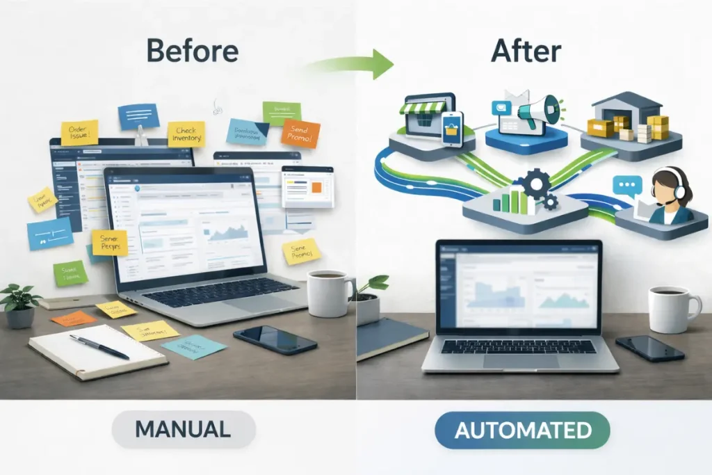I’ve spent years watching online store owners drown in operational tasks that could run themselves. The irony is sharp: you build a business to create freedom, then spend 12 hours a day manually updating inventory, copying customer data between platforms, and writing the same email responses.